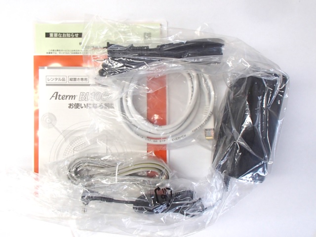 開けてみると、ホームゲートウェイと呼ばれるルータのようである。 NEC Aterm BL1000HW で、無線 LAN の契約をしていないが、ランプを見る限り無線 LAN 機能付きのものだった。 機能を無効にしている気がするけど。